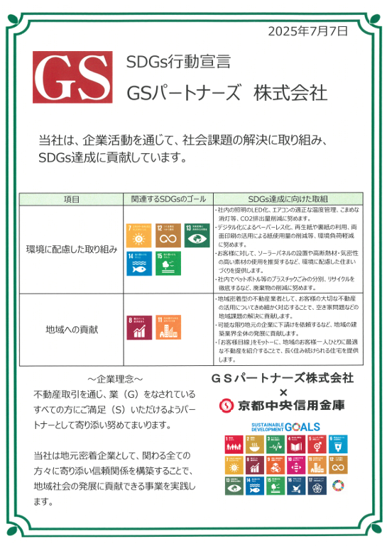 不動産取引を通じ、業(G)をなされているすべての方にご満足(S)いただけるようパートナーとして寄り添い努めてまいります